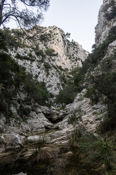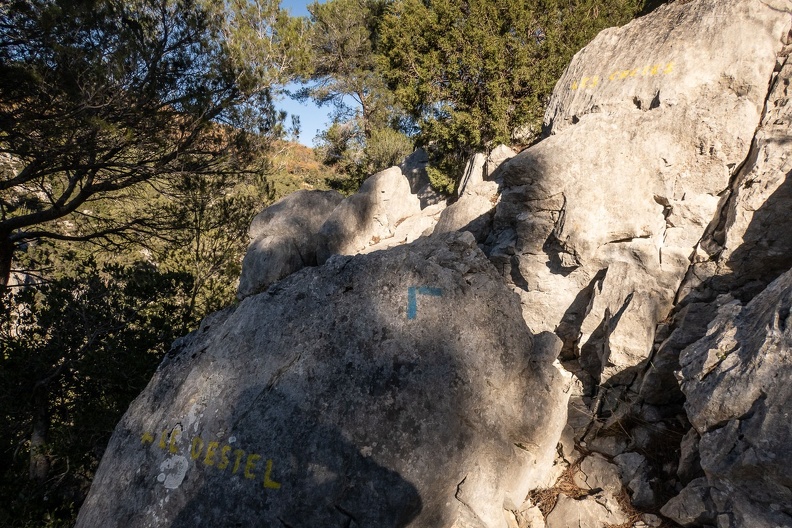 Une randonnée plutôt sportive et technique dans les Gorges du Destel, dans le Var. Départ dans un virage entre Evenos et Le Broussan pour descendre dans le vallon par un sentier raide, puis remonter des gorges jusqu'au moment où ça ne passe plus. Des marques bleues à droite permettent soit de contourner l'obstacle, soit de remonter sur les crêtes sur l'autre versant, ce que j'ai fait. De là, un beau sentier en balcon permet de rejoindre une brèche pour redescendre dans les gorges, après un détour par le Câteau du Diable et l'arche qui y donne accès (la carte Openstreetmap indique un sentier un peu en amont de cette brèche qui semble rejoindre le Château en passant par le grotte Monnier, mais je n'ai pas trouvé le passage, et vu l'heure j'ai préféré remonter). Descente dans les gorges par le pierrier, et remontée à la route par l'itinéraire de descente, pour au final 4h de randonnées et 800m de dénivelé positif.